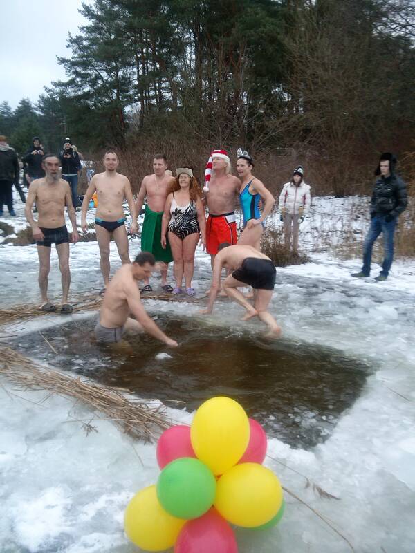 Nepaisydami žvarbaus oro, sostinės sveikuoliai pirmąją 2015 metų dieną pliuškenosi Salotės ežere.