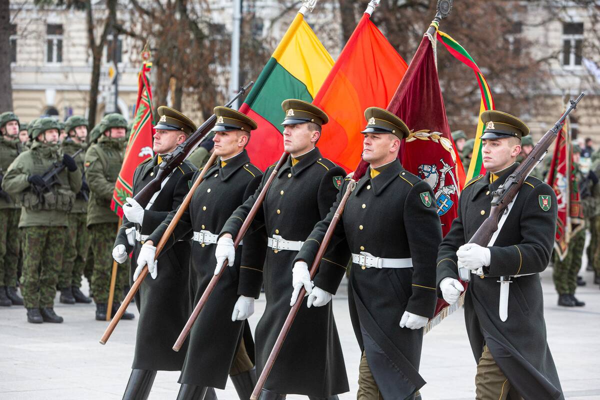 Sostinės katedros aikštėje išsirikiavo keli šimtai karių iš įvairių kariuomenės padalinių, taip pat šalyje dislokuoti sąjungininkai.