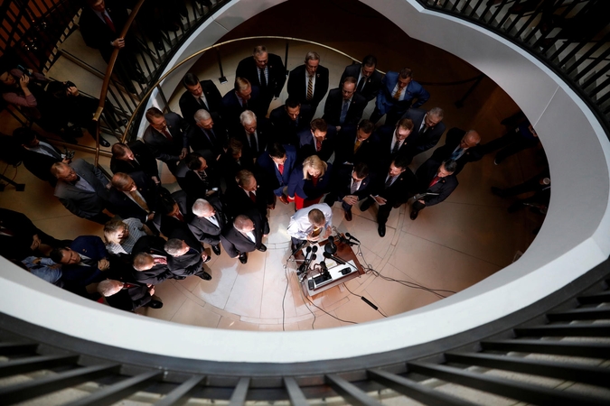 JAV respublikonai įsiveržė į apsaugotą D. Trumpo apkaltos patalpą