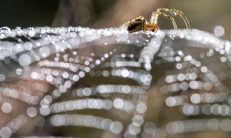 Nufilmuotas mažais vorais aptekęs „vilkinis“ voras